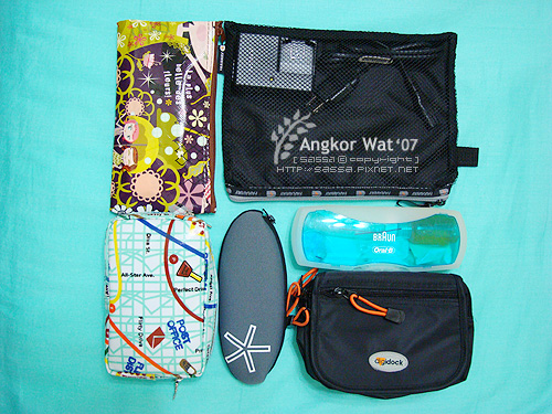 盥洗用品、眼鏡、硬碟、保養品、3C產品充電器。柬埔寨的電壓220V,50Hz,插座是那種三角圓形的,一般我們的插頭在那裡使用沒有問題。