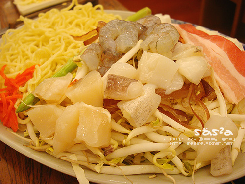 『海鮮炒麵』180元。肚子實在太餓了,看到隔壁桌的大阪燒已經做好了,我心裡真是急啊!餓....文字燒還沒填飽我的胃....