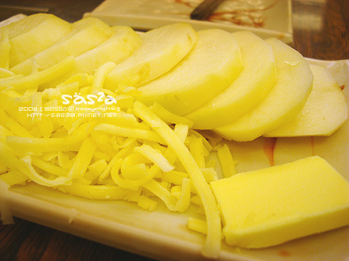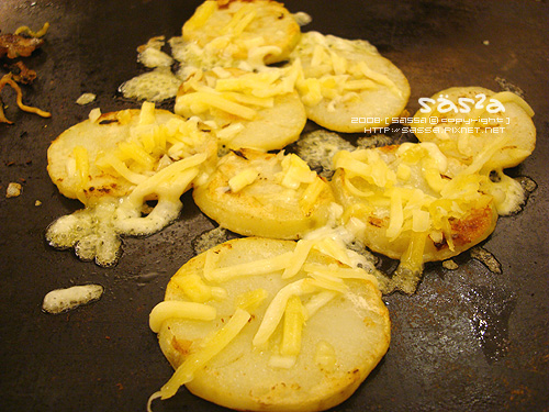 因為怕吃不飽又加點一個『奶油馬鈴薯』60元。先將馬鈴薯放在鐵板上慢慢的悶熟,加上奶油,食用前加上起司。