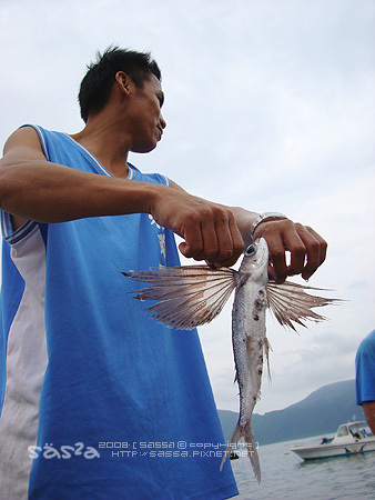飛魚翅膀。他是小婦人美式餐廳滴老闆,很熱情滴展示他滴魚貨,並且邀請我們去家裡用餐。