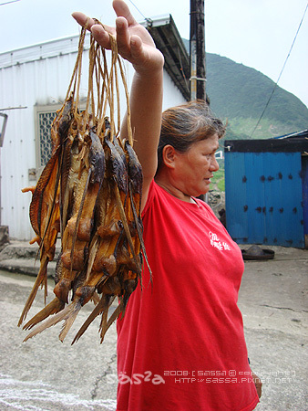 醺好的飛魚顏色很美吧!施媽驕傲滴舉著老公燻滴飛魚!『很香吶!』施媽讓我們聞看看。『明天煮給你們吃吼!』