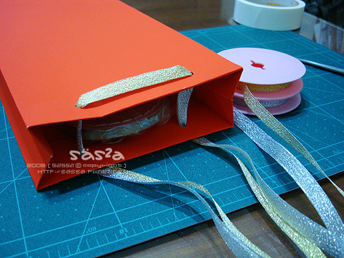 穿上有金蔥滴緞帶,我採用金銀兩色,這樣也比較豐富一點哩!