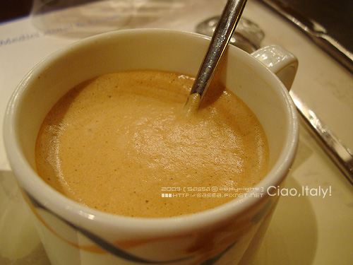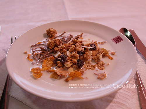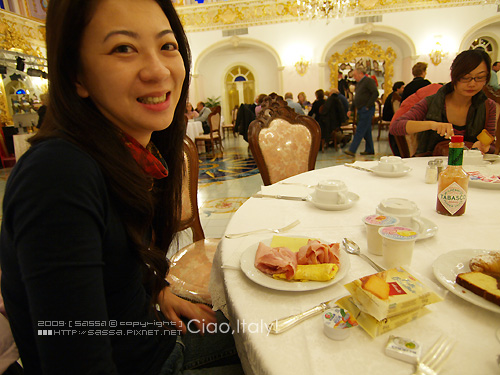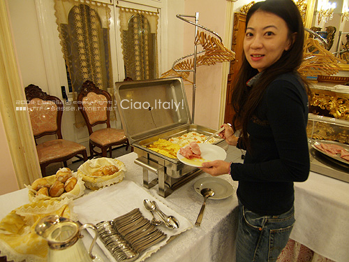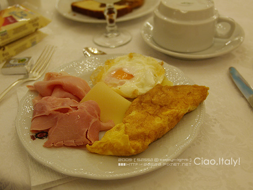 在義大利,早餐有好多種類的火腿,我超愛火腿、烘蛋,而且義大利人愛吃甜,一大早就供應許多粉甜滴麵包,這我就一個也沒碰啦!再這麼愛這些,連續吃了三天的火腿之後,其實會很膩呢!接下來的幾天我對早餐毫無興趣,除了每天老公倒的熱咖啡!