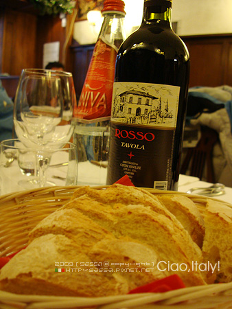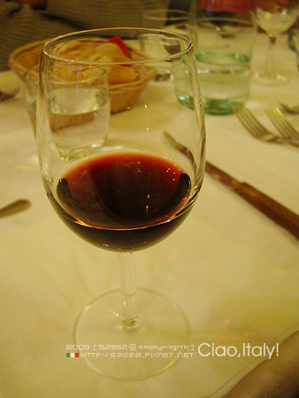 吃牛排當然要配紅酒啦!今天午餐紅酒無限量暢飲,這下讓我經不起美食與美酒的誘惑,把持不住此趟行程不喝酒的原則寥落去囉!義大利是全世界主要的紅酒消費者和生產者之一,產酒歷史近三千年,其中佛羅倫斯所屬的托斯卡尼省更是釀酒區。嘖嘖嘖!越說就越應該配上一瓶好酒,哈!