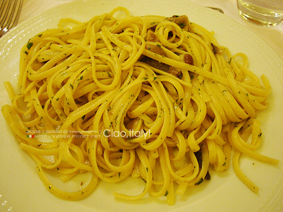在義大利麵的標準只有兩個,彈牙al dente與濃郁的醬汁。濃郁絕非我所認知的濃稠醬料,看看這盤非常樸素,服務生端上前還沒到桌就香氣逼人,炸看之下會覺得沒有味道的義大利麵,嚐了一口之後,天啊!這是哪裡來的人間美味,磨菇味整個整個在嘴裡瞬間散開,宇宙超級好吃的!這種濃郁樸實的味道還真是第一次遇上,好香好滑好好吃,同團的人都讚不絕口。