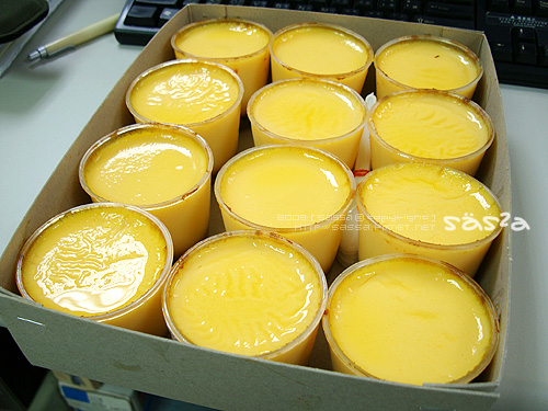 哇!一打開紙盒蓋,濃郁的雞蛋香氣整個ㄦ的衝上來,接著,我好奇的看著,疑!包裝哩!?布丁堅持純手工製作的老闆,連包裝也堅持使用最古早的盒子,簡樸的塑膠盒下沒有封印彩色薄膜蓋子,少了華麗的包裝費,直接將成本用在布丁上。