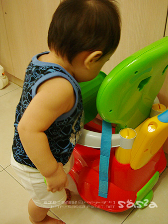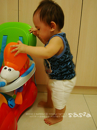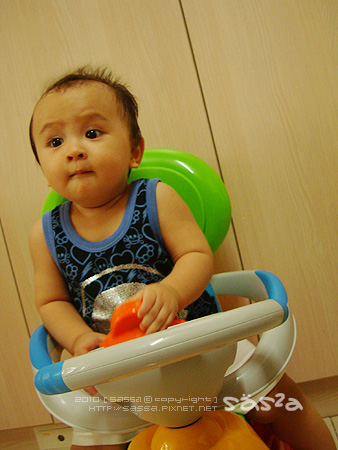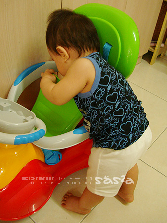 這時期的小柚子很愛chicco的大車車,能自己坐在車上保持平衡的前進、後退、改變方向,玩的不亦樂乎。