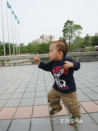 小柚子學會走路的第七天剛好是個天氣不錯的週末,柚子拔說帶小人去練習走路吧!天氣舒服的下午小柚子不畏懼的大步向前邁進,追著高掛在空中的旗幟、追著散步中的紅貴賓。