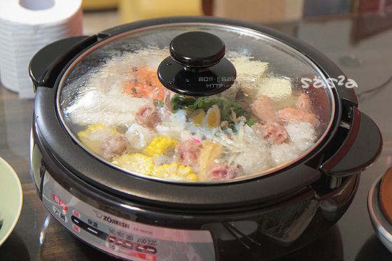 加熱的差不多之後,端上加熱器,蓋上鍋蓋。