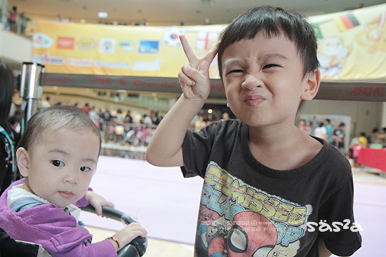 這天終於到來惹,媽媽我抱著姑且一試的心帶著小柚子與小麻醬到來。怎麼說姑且一試哩?小柚子最近不是那麼好使喚,非常有自己的想法,有自己想去做的事情順序,而且也很擔心小柚子在這麼多人的情況之下會大害羞,醬子我們豈不是僵在台上等放棄。雖然心理這麼想,平時生活上還是有默默的把這個訊息傳達出來,讓小柚子知道媽媽會帶他去跟很多小人們一起賽跑一起搬東西之類的。