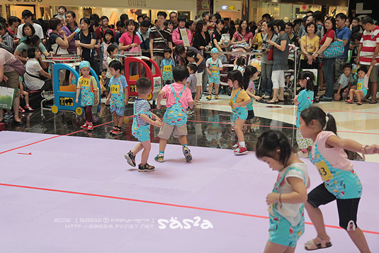 這場活動限額200名,一枚小人配上一個家庭,算一算現場不知有多少人阿!一次比賽只有兩枚幼幼上場,一個小時約消化40-50枚幼幼,比不到20枚,其他幼幼已經沒耐心,很明顯的散的散、逛街的先逛街。