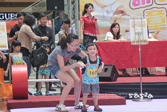 一到場主持人解釋遊戲規則,媽媽我講解給小柚子聽,小柚子一直說好好好,我知道,但我真的不確定小柚子聽得懂,然而他完成了這些指令,聽得懂我講的話,記得住遊戲的順序,我突然覺得很感動,也覺得媽媽我太小看小人的能力。當然我們年齡層這麼小,也不懂甚麼叫做得名,參與這活動只想給小柚子一個體驗,在比賽完成後,我看到小柚子臉上自信的笑容,在爸爸媽媽外婆的讚美之下,小柚子開心的不得了,似乎也覺得自己能做到很多事情一樣,真的太好惹!