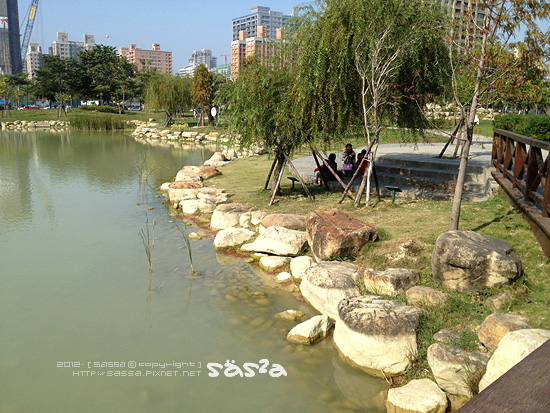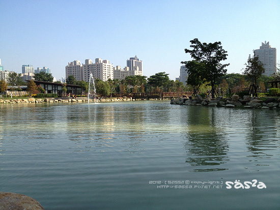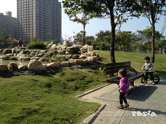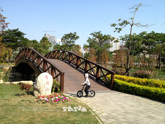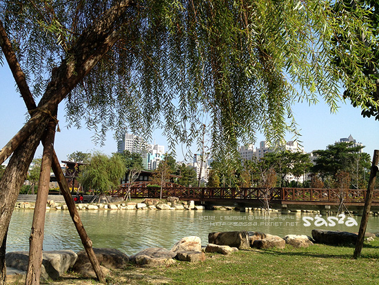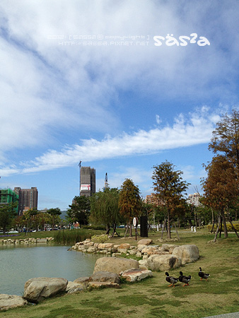 其實一開始並不知道這是哪裡?上網查詢後才知道這是近幾年新建的都會森林公園。凹仔底森林公園位於博愛路、明誠路、及南屏路交叉口,面積約10公頃,設施含蓋水池、花圃、自行車道等一處可以休閒散步以及溜小人的好去處。