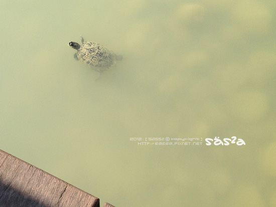 水池裡小烏龜成群,兩小人看的很開心,偶有白鷺鷥飛過。