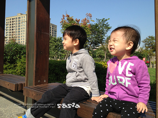 這兩天雖然氣溫驟降,但陽光非常的美麗,漂亮的天空就是想出門走走,所以在早餐過後的戶外時間,媽媽決定帶小人去公園散步。車子沒有目的的開,經過好幾個以後一定要帶孩子來玩的公園,幾乎都是家長與小人穿梭在遊樂設施,對於我一人要看兩枚小人來說,遊樂設施變成不適合的方案,當車子來到這處花海的公園,便決定停了下來。