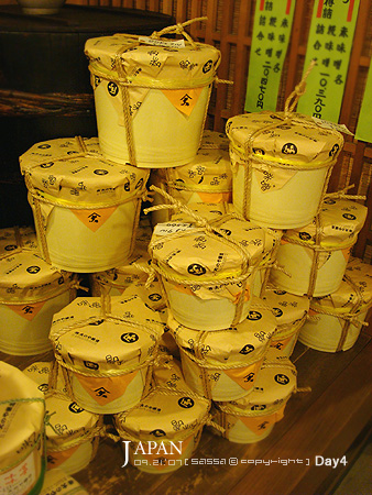 飛驒高山由於水質好、天氣冷,生產的各類米酒特別好喝,八家酒藏各有自釀自賣的『飛驒地酒』,口感、酒瓶包裝都不同,只要看到店舖招牌上有掛著松木球的,這家就肯定有賣酒。