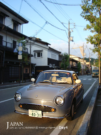 在流經高山市內的宮川東岸,有一條古老的街道。一下車,高山市古街的街景讓我眼睛為之一亮,傳統氣息的日本街道,彷彿回到三百年前日本的時代中,江戶時代的住宅保存完好,古色古香的傳統古宅與昔時商家繁華,緊緊抓住我的視線,我走的很緩慢脫離了人群。這充滿淳淳古風典雅情懷,怪不得這有『飛驒高山小京都』之美稱,一個比京都還京都的老街。