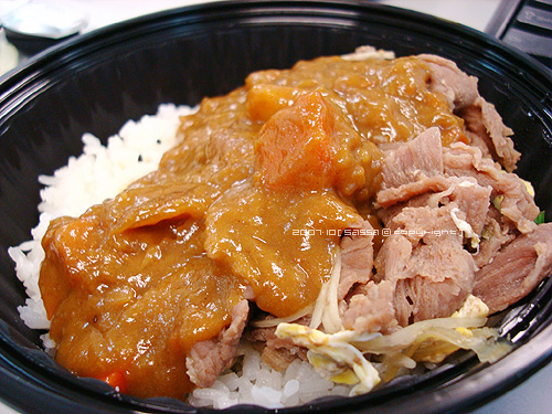 『極辣惡魔雞蓋飯』ms. N 說這個便當讓我家部門的D先生感動的『流下少男的眼淚』。我在一旁笑到流淚。D先生的眼淚跟鼻涕是用噴的~哈!灌了幾杯水之後,接著衝去樓下買冰飲。 ms. A說『這家店果然沒有偷工減料!』哈哈哈哈~D先生捲著一包面紙去了廁所....