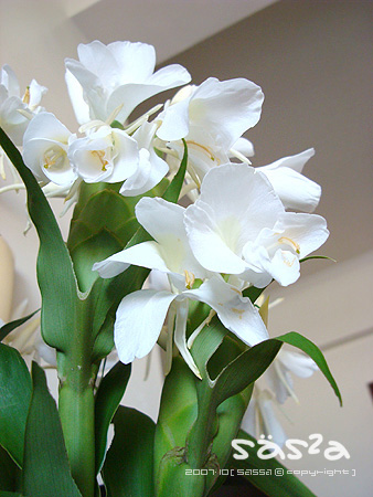 前兩逛瑞豐夜市時遇到一位手裡捧著一大束野薑花的婆婆,遠遠的我就被這香氣勾到婆婆的面前。『小姐要買野薑花嗎?』『我選一把尚水ㄟ給你』婆說。這一把幾乎都沒開,真的是最漂亮的。野薑花的香氣瀰漫在家裡每一個地方,聞起來真舒服。一早起床,上班前坐在客廳望著它....清香的想要旅行去。