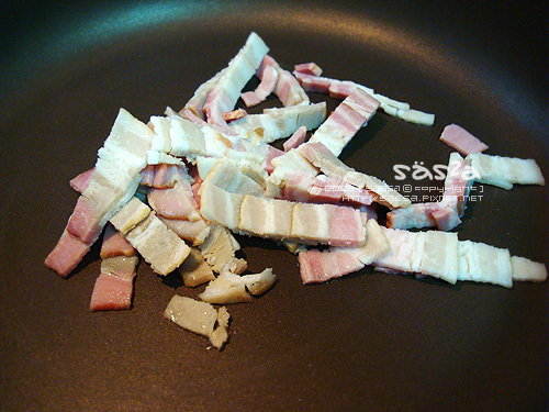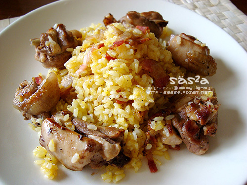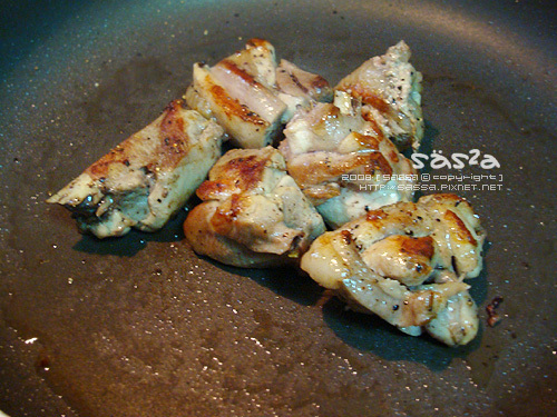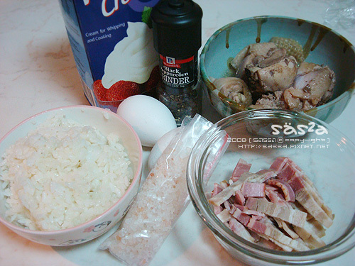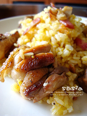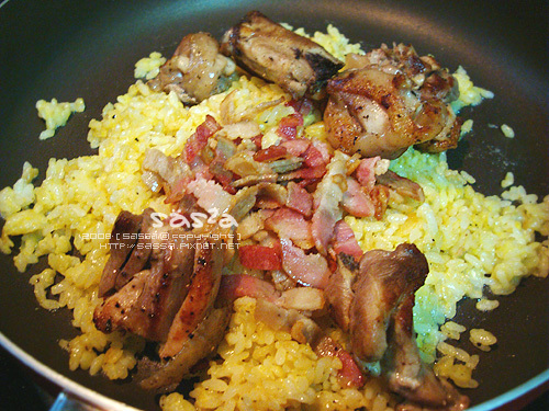 <img src="http://pic.pimg.tw/sassa/1202015510.jpg" /><br /><br /><font face="Arial"><strong>香煎嫩雞黃金炒飯<br /></strong>材料:嫩雞、黑胡椒、<font face="Arial">岩鹽</font>、蛋、鮮奶油、培根<br /><br /><!-- more --><img src="http://pic.pimg.tw/sassa/1202015424.jpg" /><br /><br />備料<br /><br /><img src="http://pic.pimg.tw/sassa/1202015432.jpg" /><br /><br />蛋黃調味,加入海鹽與黑胡椒<br /><br /><img src="http://pic.pimg.tw/sassa/1202015439.jpg" /><br /><br />加入白飯充分攪拌勻,備用<br /><br /><img src="http://pic.pimg.tw/sassa/1202015446.jpg" /><br /><br />培根煎赤出油,備用<br /><br /><img src="http://pic.pimg.tw/sassa/1202015454.jpg" /><br /><br />煎雞肉調味,海鹽、黑胡椒<br /><br /><img src="http://pic.pimg.tw/sassa/1202015462.jpg" /><br /><br />煎熟至金黃色,備用<br /><br /><img src="http://pic.pimg.tw/sassa/1202015471.jpg" /><br /><br />煎飯至飄蛋香<br /><br /><img src="http://pic.pimg.tw/sassa/1202015480.jpg" /><br /><br />翻麵煎,打散<br /><br /><img src="http://pic.pimg.tw/sassa/1202015487.jpg" /><br /><br />加入鮮奶油充分扮勻<br /><br /><img src="http://pic.pimg.tw/sassa/1202015496.jpg" /><br /><br />加入培根、嫩雞扮炒一下<br /><br /><img src="http://pic.pimg.tw/sassa/1202015504.jpg" /><br /><br />裝盤,<font face="Arial">香煎嫩雞黃金炒飯完成!<br /><br /></font></font>