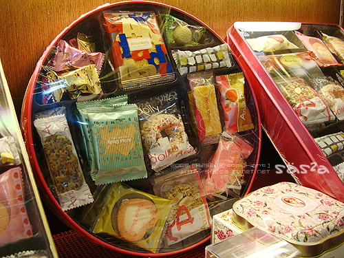 到店裡付款與決定送餅時間,發現展視窗裡一款新推出的圓形喜餅禮盒,圓圓澎澎的禮盒搭上桃紅色系,一整個就好可愛又好喜氣。詢問之下知道#6禮盒裡的餅乾都是經典款,於是我們決定將原本滴方形亞里莎改成圓形亞里莎。聽說新娘不能吃自己的喜餅阿!好心的黑奴買了一盒#6我們一起雪兒,哈哈哈!一整個開心!