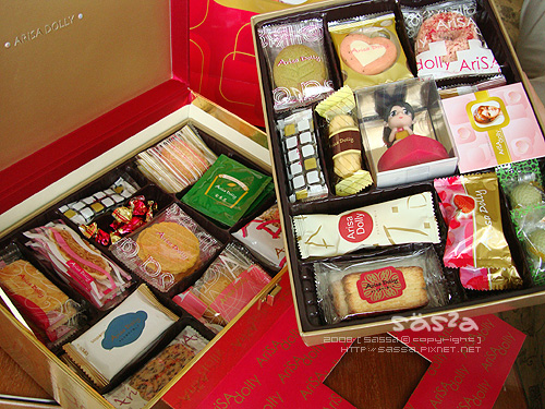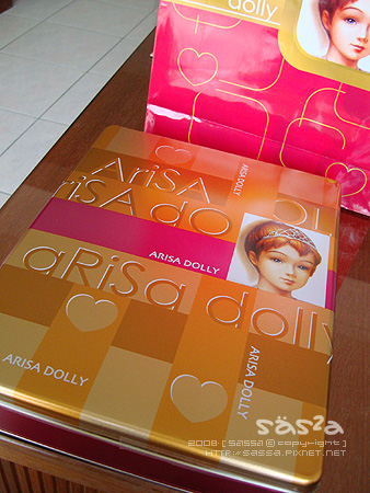日本亞里莎娃娃 ( Arisa Dolly ) 訂婚禮盒是由日本數家知名餅乾專業廠所共同開發針對台灣市場的消費需求所設計的禮盒,其採用北海道濃醇奶油及白巧克力,100 %日本國產米等高級原料,降低糖份的低甜度配方,添加歐利克寡糖,胡蘿蔔素、鈣、維他命E等元素絕不攙雜防腐劑,分別使用專門技術半手工製造而成。這些各色的小甜餅一片片地採單片包裝以保持其原有美味及鮮度,口味上多達 16 種變化擁有酥脆等截然不同口感。本系列單品品項並曾獲得日本全國果子大博覽會金賞獎。